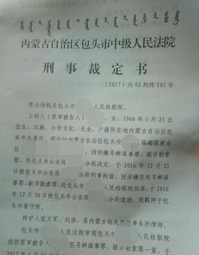 【包头中院二审裁定】